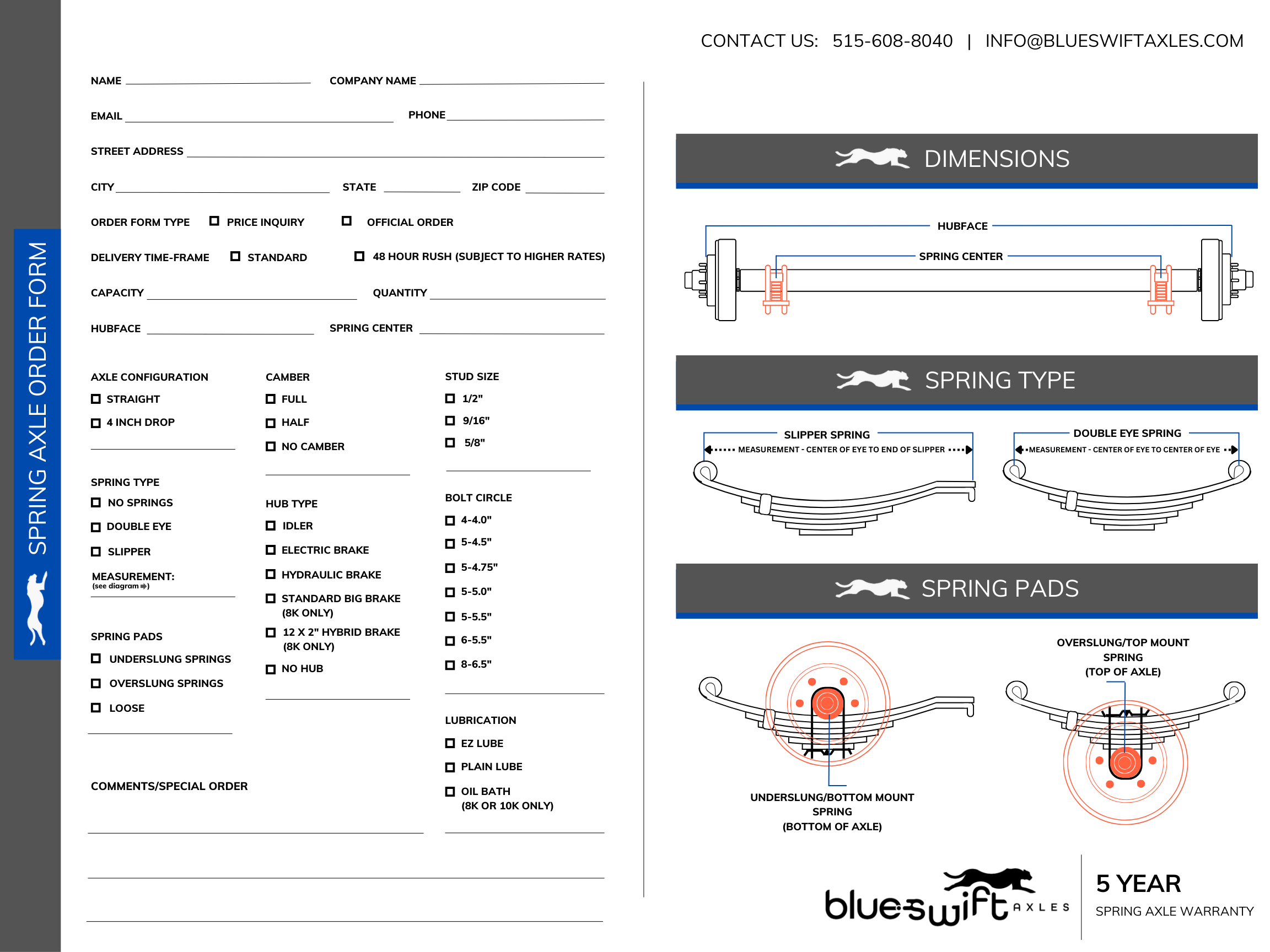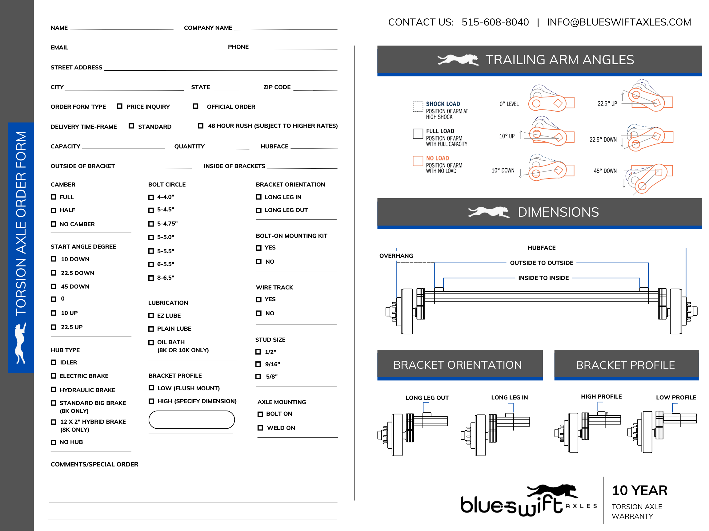 Fill out the attached form and get in touch with our team of axle experts. They will walk you through the entire ordering process from start to finish ensuring you get the right axle.